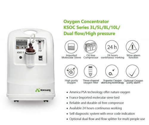 Tak seperti oksigen medis yang disuplai dari unit industri melalui tabung, konsentrator oksigen merupakan perangkat yang dapat dioperasikan di rumah. Oxygen Concentrator dapat bekerja dengan menyambungkannya ke stopkontak listrik atau menggunakan baterai. Cara kerja alat ini adalah menyaring udara di ruangan yang awalnya terdiri dari 80 persen nitrogen dan 20 persen oksigen. Lalu konsentrator oksigen menggunakan udara itu, kemudian menyaringnya dan diubah menjadi 90 hingga 95 persen oksigen murni. Nitrogen dipisahkan untuk memberi pasien dosis oksigen setinggi mungkin.